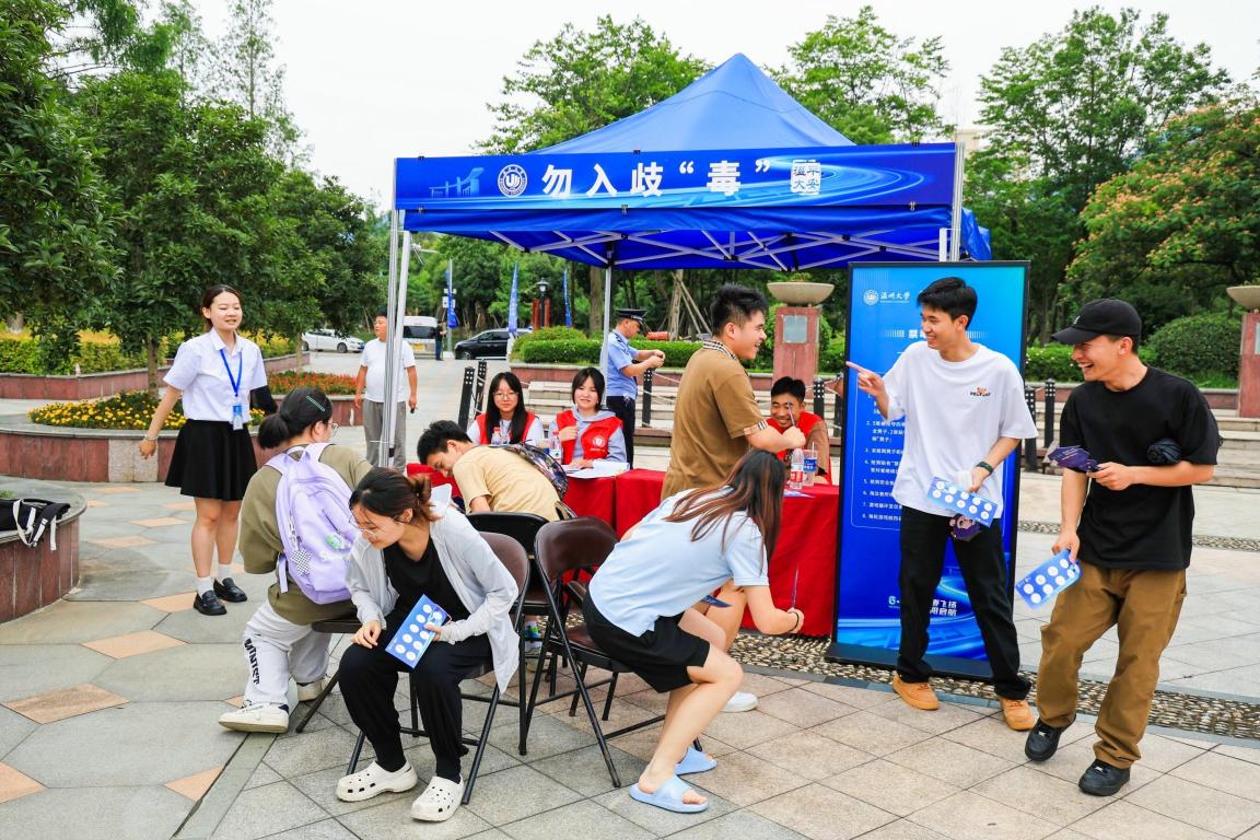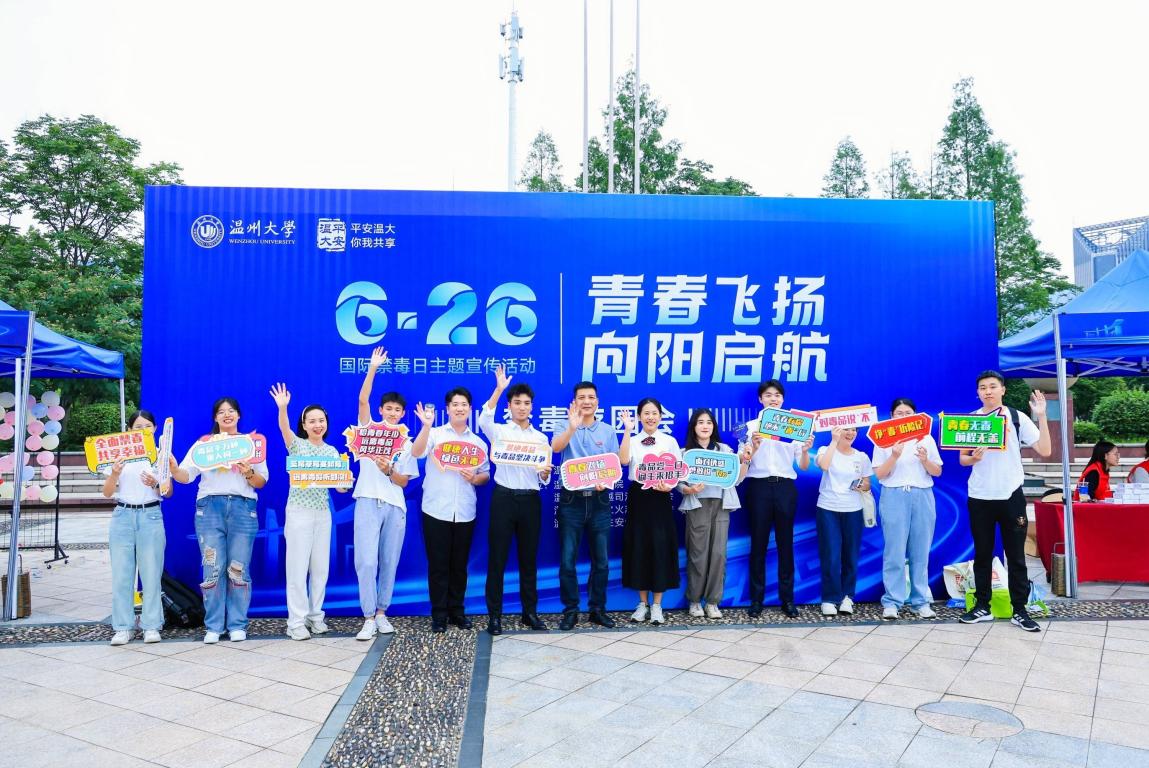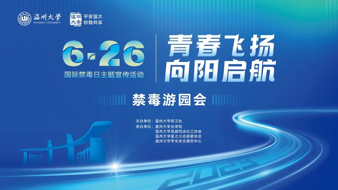 为全面营造全民禁毒宣传月活动氛围,助推温州市“全国禁毒示范城市”创建工作,进一步增强在校学生识毒、防毒、拒毒、禁毒意识,在第36个“6·26”国际禁毒日来临之际,ac米兰官网中文网站保卫处联合法学院开展“青春飞扬,向阳启航”——禁毒主题游园会,活动吸引了温州各大高校学生广泛参与。