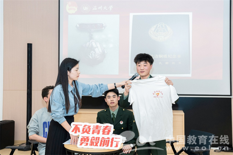 访谈中,三位同学都表示,经过两年部队生活的锤炼,自己信念更加坚定了,心里也不再像当兵前那样迷茫,现在的自己,目标更加明确了。如果说,入伍前的想法很简单,找份工作独立生活就行。那么在经历了两年军营锻炼后,思想更为丰富了,视界更加开阔了,无论在哪里都想贡献自己的一份力量。现如今,他们有的和自己所在的退伍士兵班同学一起继续在校内外各种活动中发光光热,有的则参与到温州市黑马应急救援队中,退伍不褪色,退役不退志。访谈最后,主持人王景欣也分享了自己作为通信女兵在部队服役两年的许多生活点滴和感悟,让现场同学近距离感受到了巾帼不让须眉的铿锵意志和铁血之下女性的柔软与温情。
