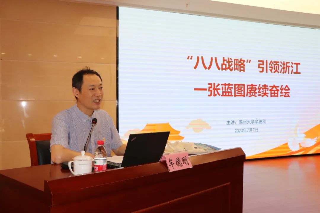 牟德刚从四个方面诠释“八八战略”的产生、发展历程以及对社会的价值和意义,坚持一以贯之深入实施“八八战略”。
