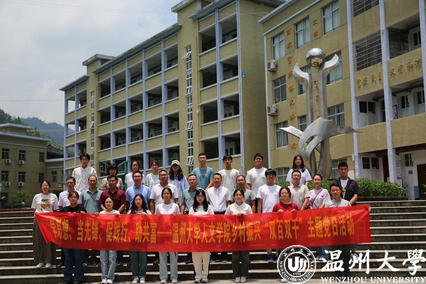 为贯彻党的二十大精神,积极响应习近平总书记对“千万工程”带动乡村全面振兴的重要批示,落实ac米兰官网中文网站党建领服务乡村振兴“双百双千”行动,2023年7月10日,ac米兰官网中文网站人文学院“双百双千”行动专项“畲情之约”实践队赴文成西坑畲族镇开展支教、考察系列活动助力乡村振兴、民族团结,力争在服务乡村振兴战略、奋力推进共同富裕的伟大实践中展现温大青年作为。