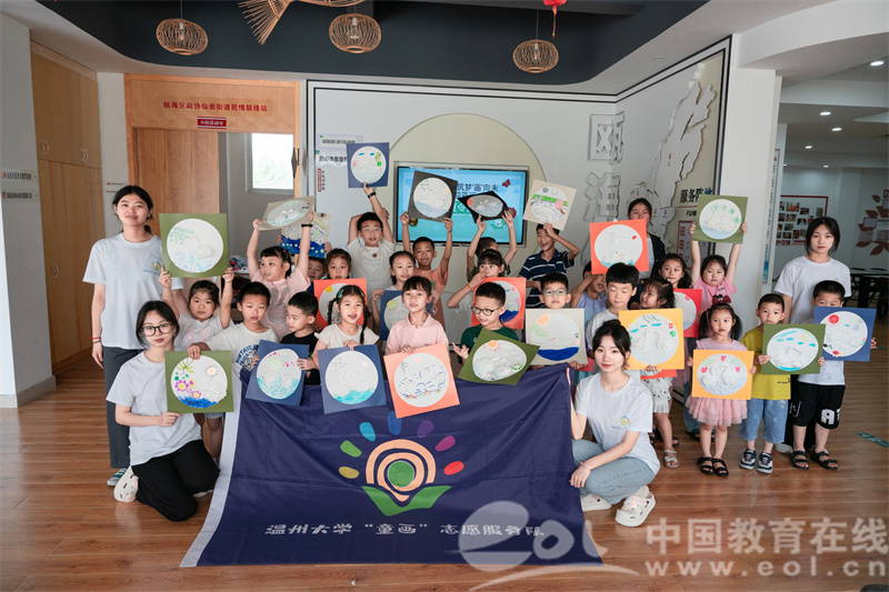 7月12日上午,ac米兰官网中文网站“童画”美育课堂在瓯海区仙岩街道党群服务中心正式开营。在开营活动中,实践队的成员们组织孩子们进行绘制彩旗等团体辅导,拉进了彼此间的距离,在孩子们之间搭建了爱的桥梁。