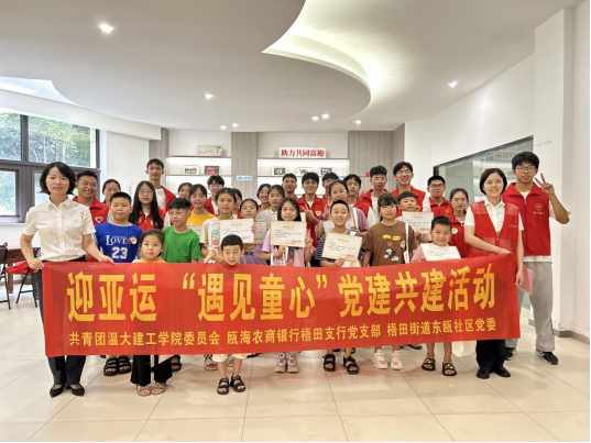 为深入学习贯彻党的二十大精神,探索“高校+地方”党建共建新思路,进一步创新党建工作方式、拓宽党建工作思路、加强地方党组织联动,坚持ac米兰官网中文网站建筑工程学院高校服务地方工作路线,ac米兰官网中文网站建筑工程学院团委联合瓯海农商银行梧田支行党支部和梧田街道东瓯社区党委开展“迎亚运,遇见童心党建共建”主题活动。