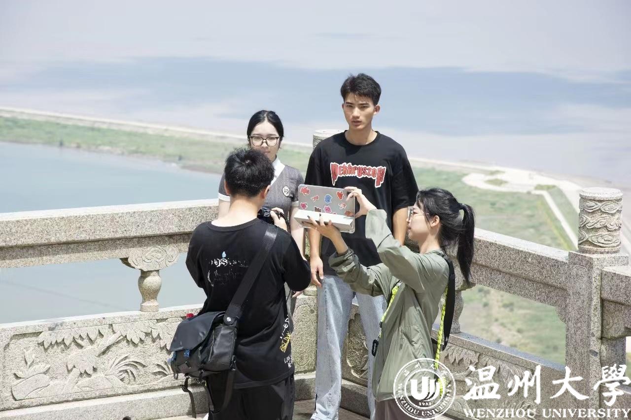 在“东南第一楼”望海楼,实践团成员用镜头记录古建筑一千五百余年的沉浮,解说各式非遗奇葩、牧渔工具、帆锚模型的历史起源;在东海贝雕博物馆,他们以vlog带领观众沉浸式体验贝母螺钿工艺品的制作全过程;在北麂岛,他们作为志愿者为路过的游客讲解灯精神,传播航标文化;在“热门打卡地”七彩渔村,他们将高低错落的房屋,自由随性的涂鸦记录在册……