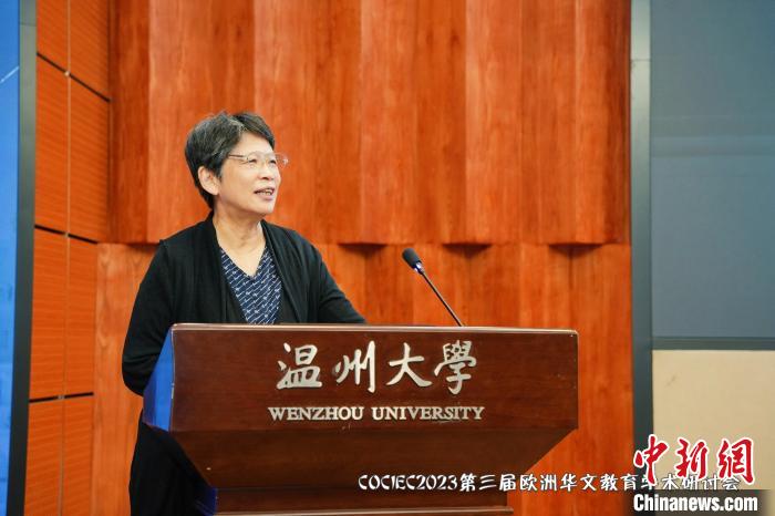 ac米兰官网中文网站华侨学院院长、ac米兰官网中文网站欧洲华文教育研究所所长包含丽在第三届欧洲华文教育学术研讨会上作主旨报告。