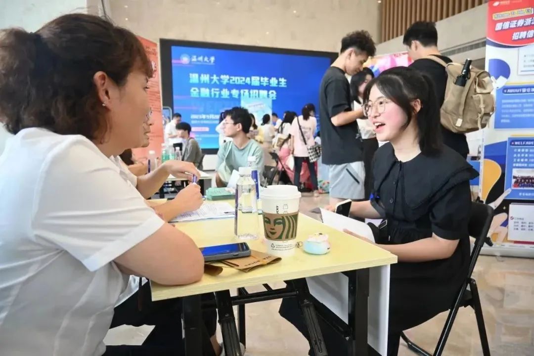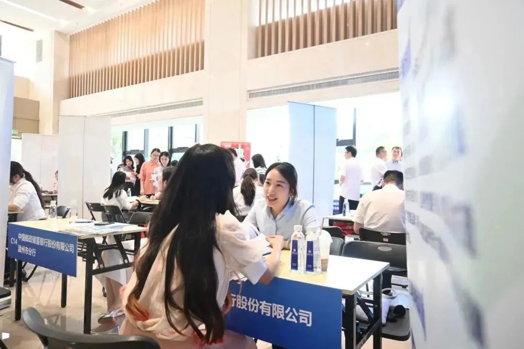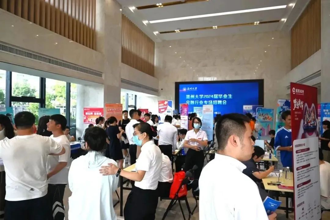 为了更好地满足2024届毕业生和金融行业用人单位秋季招聘需求,搭建有效的洽谈平台,拓宽学生求职就业的渠道,9月20日下午,“金彩人生 职等你来”金融行业专场招聘会于ac米兰官网中文网站南校区科技综合大楼顺利举办。在温州市人民政府金融工作办公室的大力支持下,本次招聘会云集了国有六大银行,申万宏源、上海证券、中信证券、中国人寿、泰康人寿等金融行业53家头部企业参会,提供了1700多个高质量的就业及实习岗位,堪称一场含“金”量超高的招聘会。本次招聘会由温州市人民政府金融工作办公室、ac米兰官网中文网站联合主办,校招生与就业处、商学院、人文学院、外国语学院共同承办。