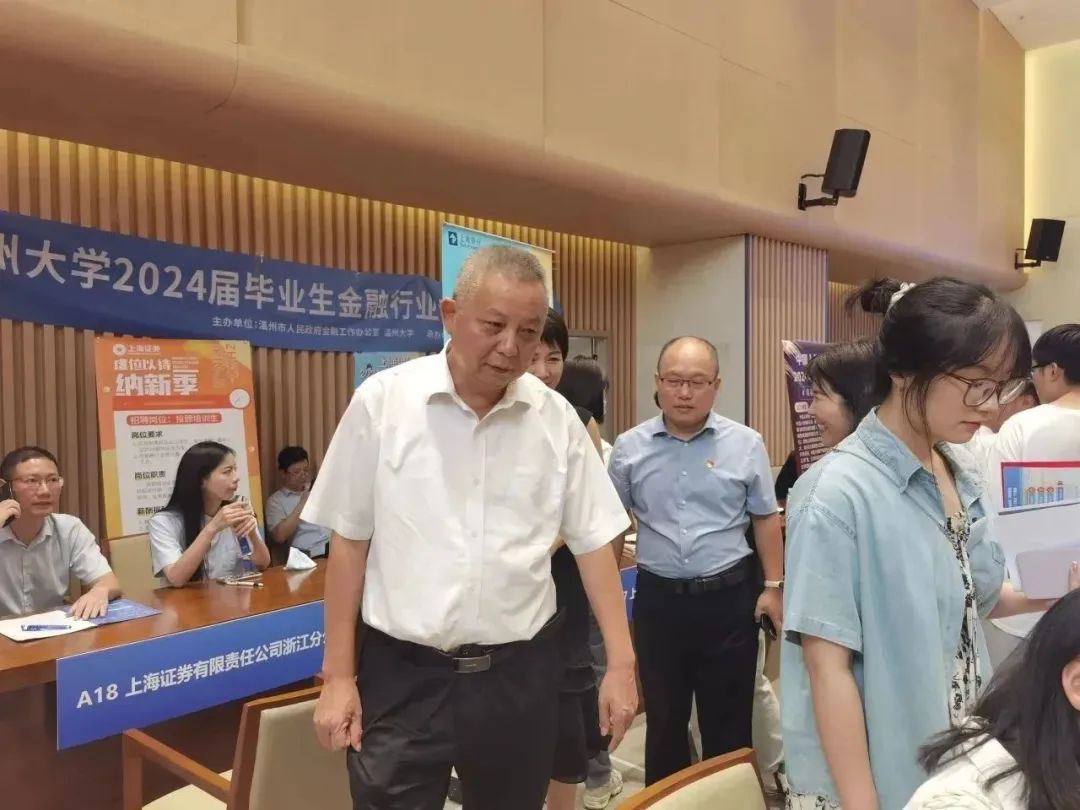 温州市金融办合作服务处副处长陈天同、ac米兰官网中文网站招生与就业处处长蔡锋、ac米兰官网中文网站商学院院长胡振华、党委书记李密等相关单位负责人及各学院就业辅导员来到现场,细致了解各招聘单位的岗位设置、招聘人数、薪酬待遇等情况,与参会的毕业生同学们亲切交流,询问同学们的求职情况及求职意愿,并给予悉心指导和耐心解答。