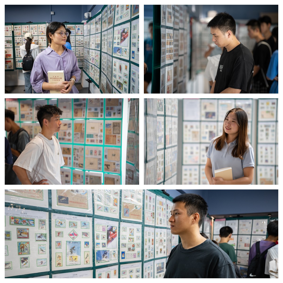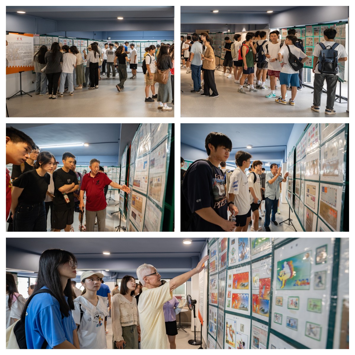 邮品展出期间,前来观展的师生络绎不绝。市老干部集邮社的老同志们从早到晚坚持不懈地为大家进行耐心、细致的讲解。师生们透过邮票的方寸世界看体育、通过老同志们的精彩讲解了解中国体育事业的发展壮大历程,大家不仅为邮品艺术陶醉,也为中国的体育发展自豪不已,更被老干部们的精神所深深感动和激励。学生徐穗说:“邮展不仅为我们带来了视觉上的享受,更是一次精神上的洗礼。它不仅传递了体育精神还展现了中国力量,尤其是理想信念、家国情怀、使命担当、忠诚品格;让我领略到体育文化魅力的同时,也让我深刻认识到体育在我们国家和民族中的重要地位。”学生黄岳钦说:“在杭州亚运会开幕倒计时之际,我有幸参观此次体育专题邮展,看到了中国体育的成长历程,也看到了老干部们对体育强国事业的坚定信念和满腔热情。我深深为之感动。”学生张璐瑶说:“‘方寸映乾坤,集邮展文脉’,看到老干部们为体育强国而捐赠出自己多年珍藏的体育系列邮票,我无比感动。作为一名预备党员和体育专业学生,我更坚定了积极投身国家体育事业发展和体育强国梦建设伟大实践的理想信念!”