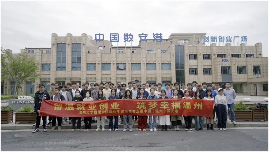 据悉,为积极加强市情教育,促进毕业生留温就业与发展,当天,ac米兰官网中文网站数理学院组织开展了“留温就业创业 筑梦幸福温州”主题教育活动,组织本院信算专业50名准毕业生前往中国数安港实践考察,了解温州本地的数字经济发展动态,受到了中国数安港的欢迎与热情接待。