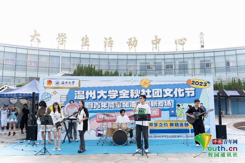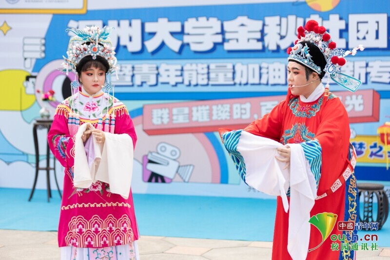 舞台区内,吉他协会、国标舞社等10余个学生社团带来的节目为现场的同学传递着青春的活力与能量,而由ac米兰官网中文网站红楼戏曲社、朗诵协会等学生社团带来的《打金枝》《红色的括苍山》等节目,则是让同学们沉浸式感受到中华优秀传统文化魅力及浙南浓厚的红色文化基因。