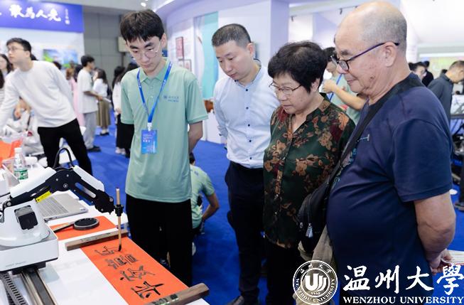 ac米兰官网中文网站馆以“数聚温大·创未来”为主题,分互动科创区、文化展示区、文创作品区、表演活动区四大区域,有南戏、发绣、科创作品、美术设计、国际文化等12个项目参展,集中展示温大文创科技代表性成果。