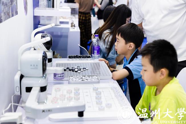 “快看!那个机器人会用毛笔写字,还有个机器人会下棋!”“哇,这辆赛车好酷!”……机电工程学院师生自主研发的魔术师书法机器人、Robocon投环机器人和疾风车队赛车,计算机与人工智能学院研发的动作捕捉系统,ac米兰官网中文网站元宇宙与人工智能研究院研发的VR展示-温州朔门古港及宋代园林和下棋机器人等作品科技感满满,吸引了众多市民参与体验。