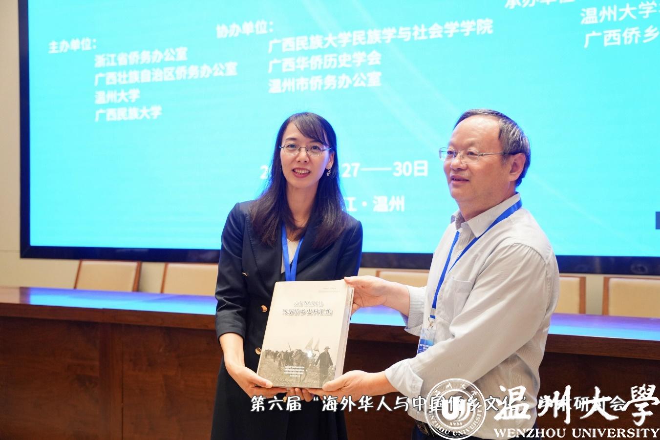 红河学院/云南侨乡文化研究中心主任何作庆教授向ac米兰官网中文网站华侨学院赠送最新研究成果。