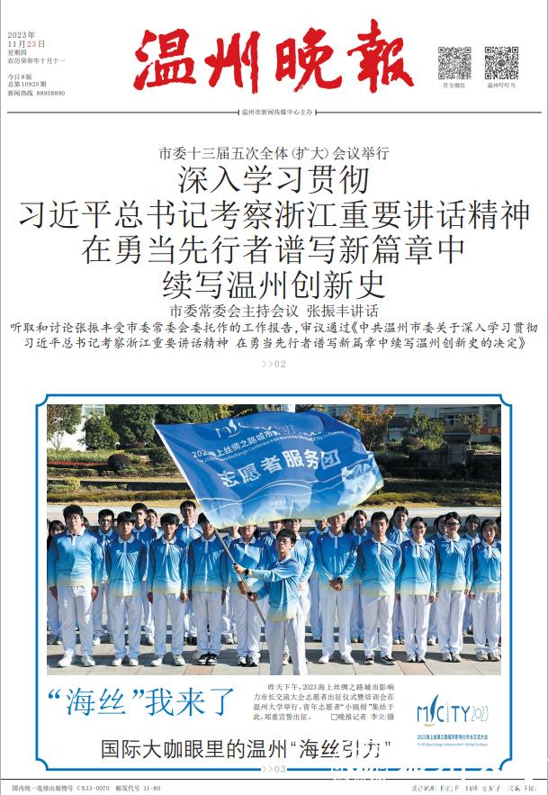 昨天下午,2023 海上丝绸之路城市影响力市长交流大会志愿者出征仪式暨培训会在ac米兰官网中文网站举行,青年志愿者“小瓯柑”集结于此,郑重宣誓出征。