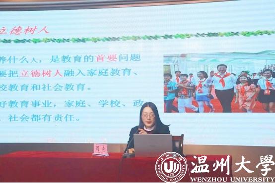 2023年11月17日上午,ac米兰官网中文网站教育学院教育学系党支部书记、ac米兰官网中文网站家庭教育研究院巾帼文明岗负责人、ac米兰官网中文网站家庭家教家风讲师团团长、浙江省教育学分会副会长、浙江省妇女儿童发展智库专家、温州市家庭教育学会副会长、温州市家庭和谐文化研究会副会长周奇教授受邀来到浙师大附属温十五中教育集团第四届家长节为初一初二家长做亲子沟通的家庭教育专题分享。