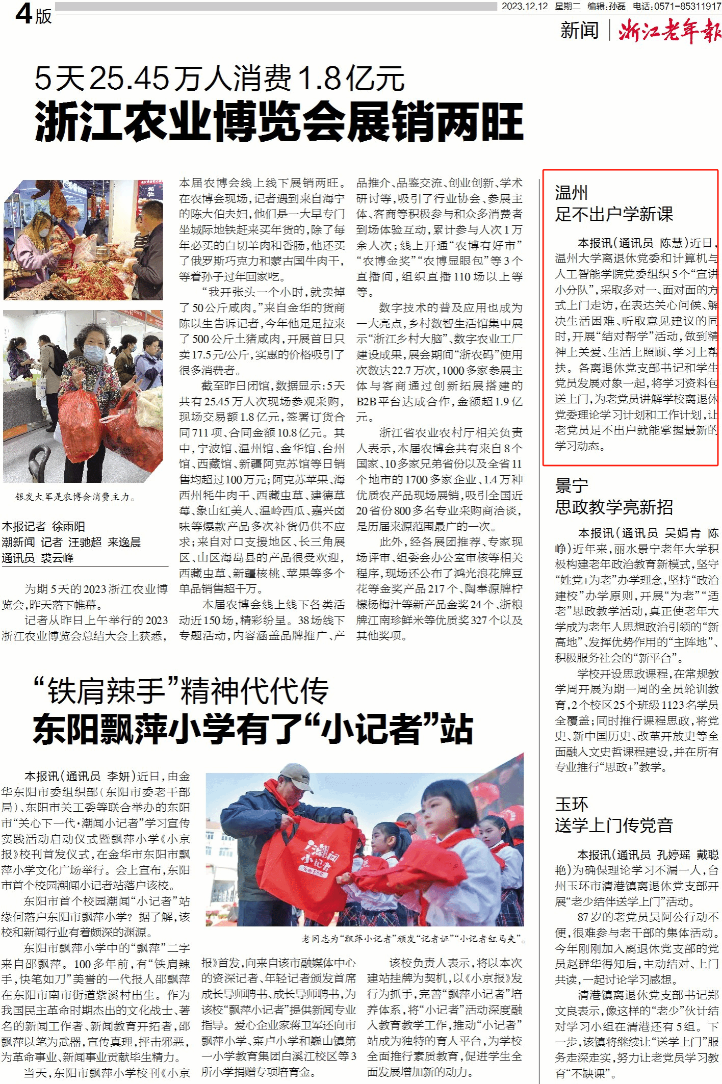 近日,ac米兰官网中文网站离退休党委和计算机与人工智能学院党委组织 5个“宣讲小分队”,采取多对一、面对面的方式上门走访,在表达关心问候、解决生活困难、听取意见建议的同时,开展“结对帮学”活动,做到精神上关爱、生活上照顾、学习上帮扶。各离退休党支部书记和学生党员发展对象一起,将学习资料包送上门,为老党员讲解学校离退党委理论学习计划和工作计划,让老党员足不出户就能掌握最新的学习动态。