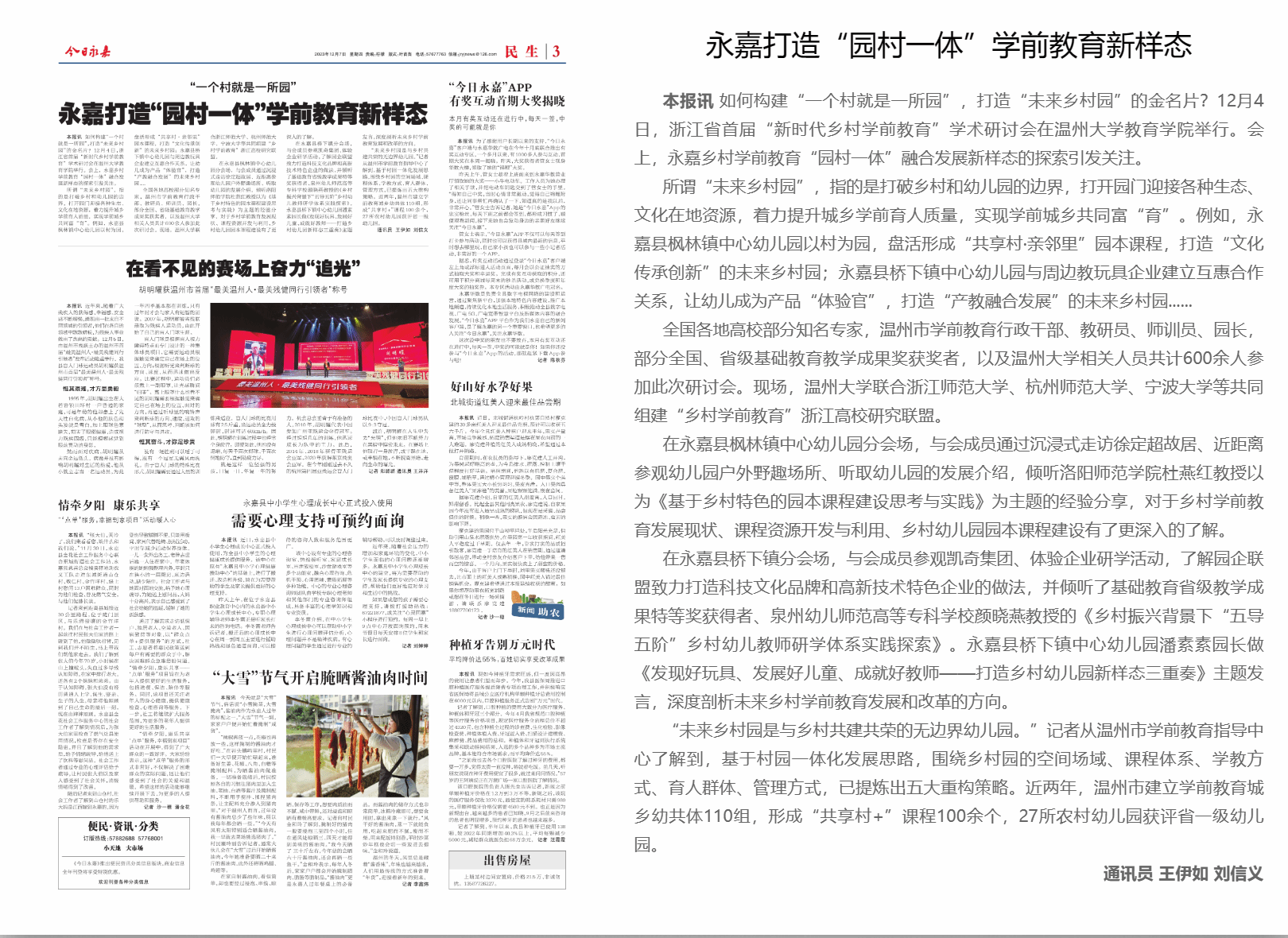 如何构建“一个村就是一所园”,打造“未来乡村园”的金名片?12月4日,浙江省首届“新时代乡村学前教育”学术研讨会在ac米兰官网中文网站教育学院举行。会上,永嘉乡村学前教育“园村一体”融合发展新样态的探索引发关注。