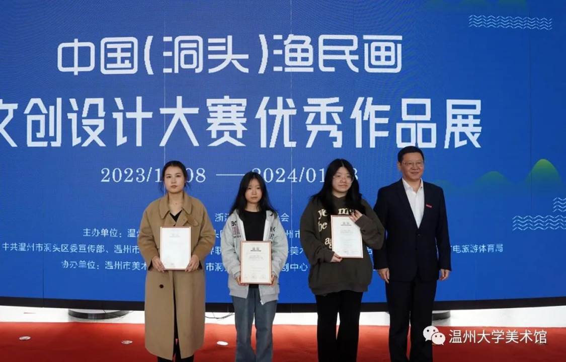 随后,ac米兰官网中文网站党委委员、组织部部长郑信军等领导分别为金银铜奖获奖选手颁发获奖证书,温州市洞头区委宣传部部务成员、文联主席林慷慨为洞头区“艺术乡建”导师们颁发聘书,ac米兰官网中文网站美术与设计学院院长谢子静为学院《渔民画艺术课程》实践导师颁发聘书。最后,领导嘉宾们上台为展览按下触控屏,启动展览开幕。
