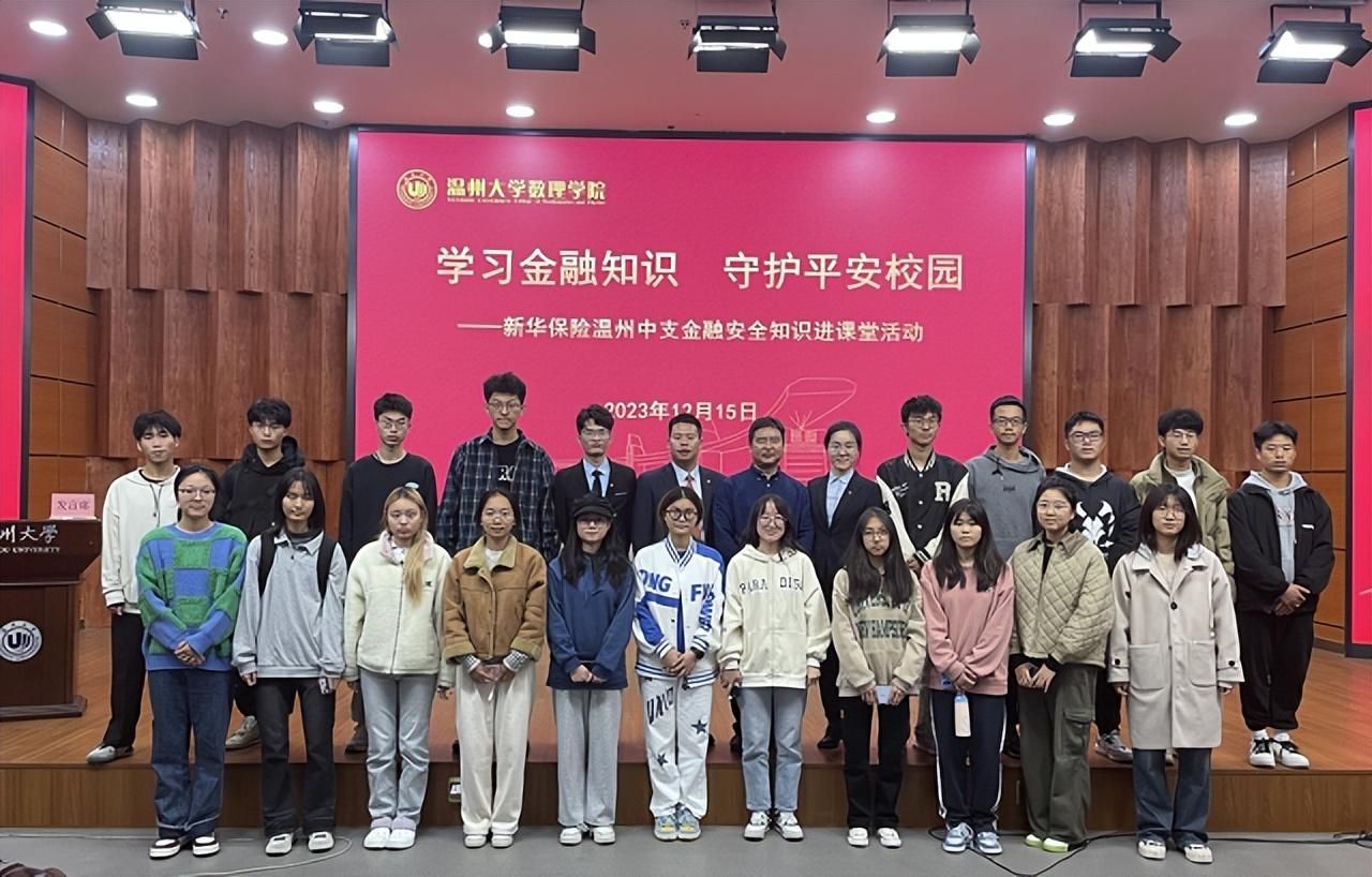 为培养大学生金融安全意识,提升大学生防范金融诈骗能力,帮助大学生树立正确消费观念,12月15日,新华保险温州中支走进ac米兰官网中文网站,举办“学习金融知识 守护平安校园”金融安全知识进课堂活动,为数理学院大一新生开展金融安全知识普及和防范校园金融诈骗安全教育。