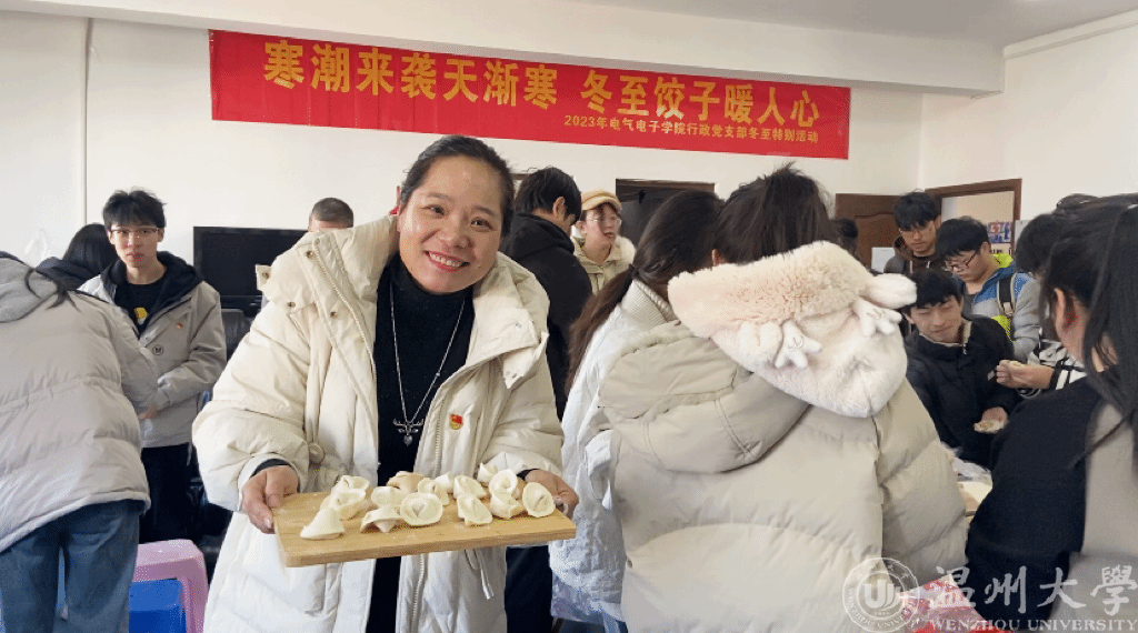 12月22日中午,ac米兰官网中文网站电气电子学院行政教工党支部教师和结对帮扶学生齐聚一堂,话青春、包饺子,情暖冬至、其乐融融。