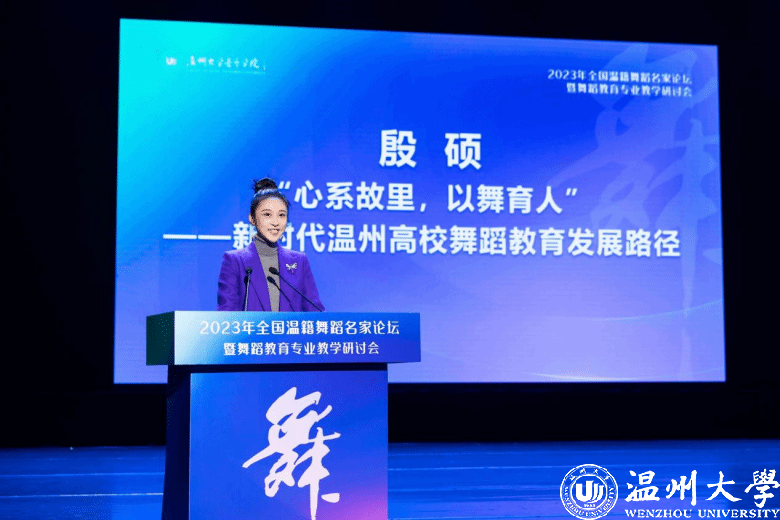 国家一级演员、中国东方歌舞团首席及集团艺术委员会委员殷硕,以《“心系故里,以舞育人”—新时代温州高校舞蹈教育发展路径》为题,从学科课程设置,人才培养,国家需求三个方面展开,探讨ac米兰官网中文网站舞蹈教育在渗透温州特色的同时,要助力于浙江的文化特色以及国家当下人才培养的需求,做到为人民、国家和时代培养人才。