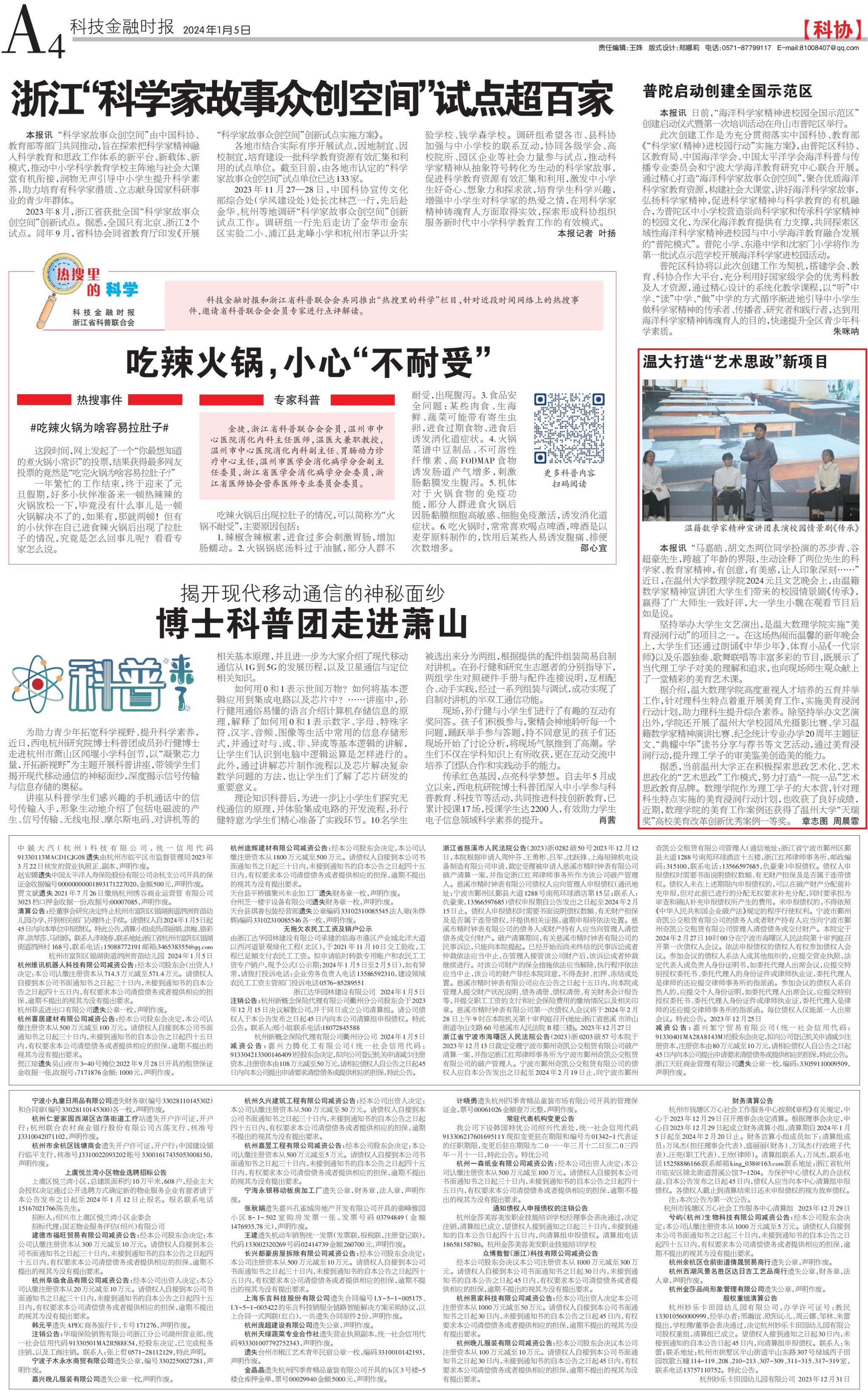 “马嘉皓、胡文杰两位同学扮演的苏步青、谷超豪先生,跨越了年龄的界限,生动诠释了两位先生的科学家、教育家精神,有创意,有美感,让人印象深刻……”近日,在ac米兰官网中文网站数理学院2024元旦文艺晚会上,由温籍数学家精神宣讲团大学生们带来的校园情景剧《传承》,赢得了广大师生一致好评,大一学生小魏同学在观看节目后如是说。