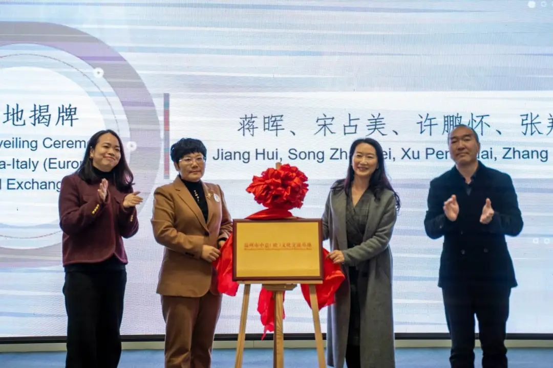随后,温州市鹿城区政协副主席蒋晖、ac米兰官网中文网站国际教育学院宋占美院长为基地揭牌。宋占美还与温州市鹿城区政协常委、温州市海外传播中心主任许鹏怀,意大利咖啡学院中国区负责人张翔,签署了共同建立温州中意(欧)文化交流基地的合作协议。