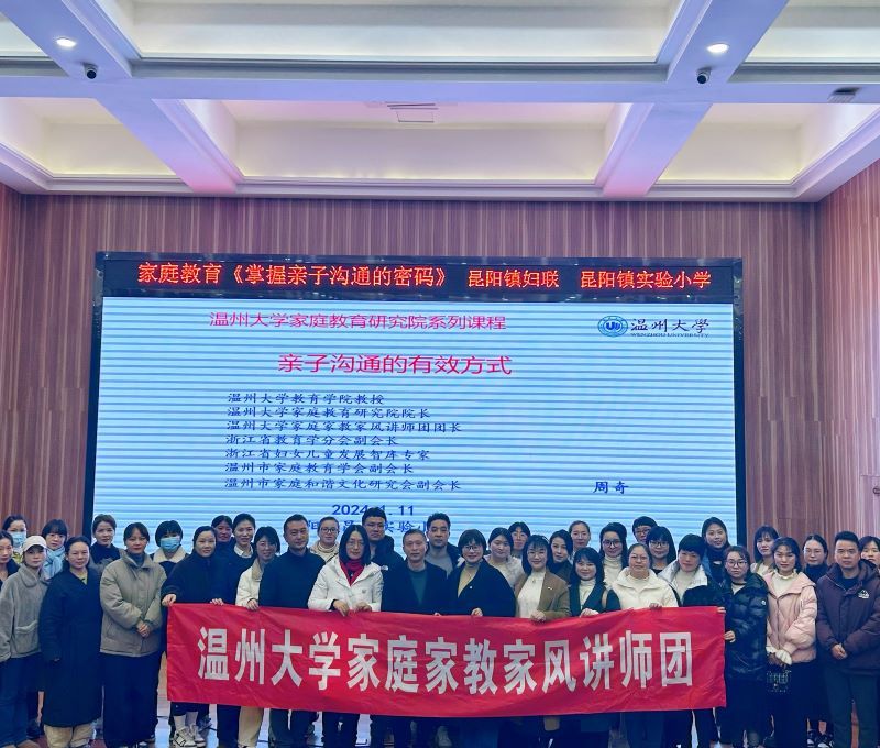 2024年1月11日晚,平阳县昆阳镇实验小学邀请ac米兰官网中文网站教育学院教育学系党支部书记、ac米兰官网中文网站家庭教育研究院巾帼文明岗负责人、ac米兰官网中文网站家庭家教家风讲师团团长,温州市家庭教育学会副会长周奇教授做《亲子沟通的有效方式》专题讲座。