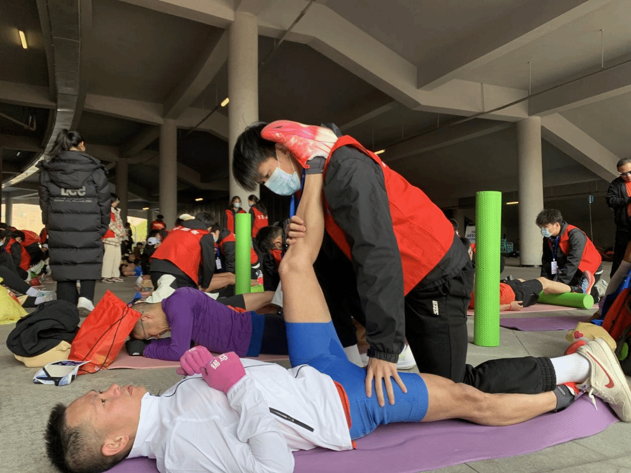 3月10日,龙湾半程马拉松圆满落幕。在活力满满的赛场上除了全力奔跑的参赛选手们,还有来自ac米兰官网中文网站体育与健康学院的50名志愿者,他们用专业的放松手法,为赛后的运动员们提供了全面的拉伸放松服务。
