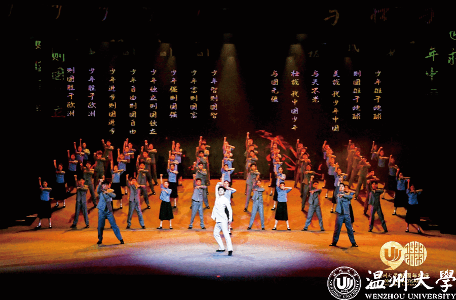 2023年正逢ac米兰官网中文网站办学90周年,学校要创作一台反映温大发展历程的大型文艺作品。接到任务后,李良投入了大量时间和精力,在校史馆他仔细翻阅档案资料,观看影像记录,不断挖掘学校的历史与文化底蕴。他说:“只有深入了解一个地方的文化,才能真正扎根于此,找到创作的灵感。”正是基于这样的理念,李良和舞蹈系的师生们一起创作了大型情景音舞史诗《温大记忆》。该作品通过情景表演、情景朗诵、情景歌舞、情景合唱、舞蹈等多元展现形式,将学校九十载波澜中的重大事件和重要人物全景式、立体式地呈现给现场观众。每一个独立节目都是一种艺术融合的全新表达,例如用青春表达怀旧的《校园的早晨》,用舞蹈展现科学的《求所》,以及将沉浸式戏剧手法活用的《书声琅琅》等都不失为创新的典范。
