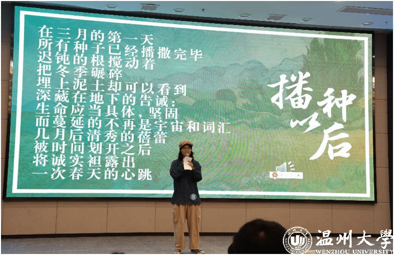 原创诗词环节,选手们神采飞扬,一一登台展示自己的作品,有格律对仗整齐的古体诗,也有自由奔放的现代诗。选手们或抒情婉转解说,或慷慨激昂诵读,充分展现了当代温大学子蓬勃向上的青春活力。观众席上掌声阵阵。