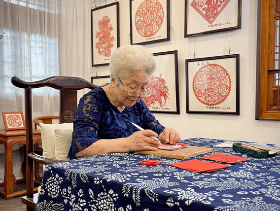 柯娟娥进行剪纸创作