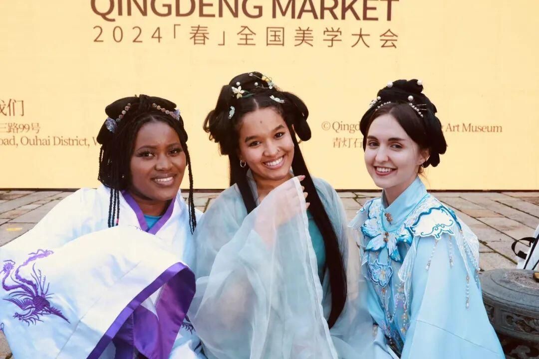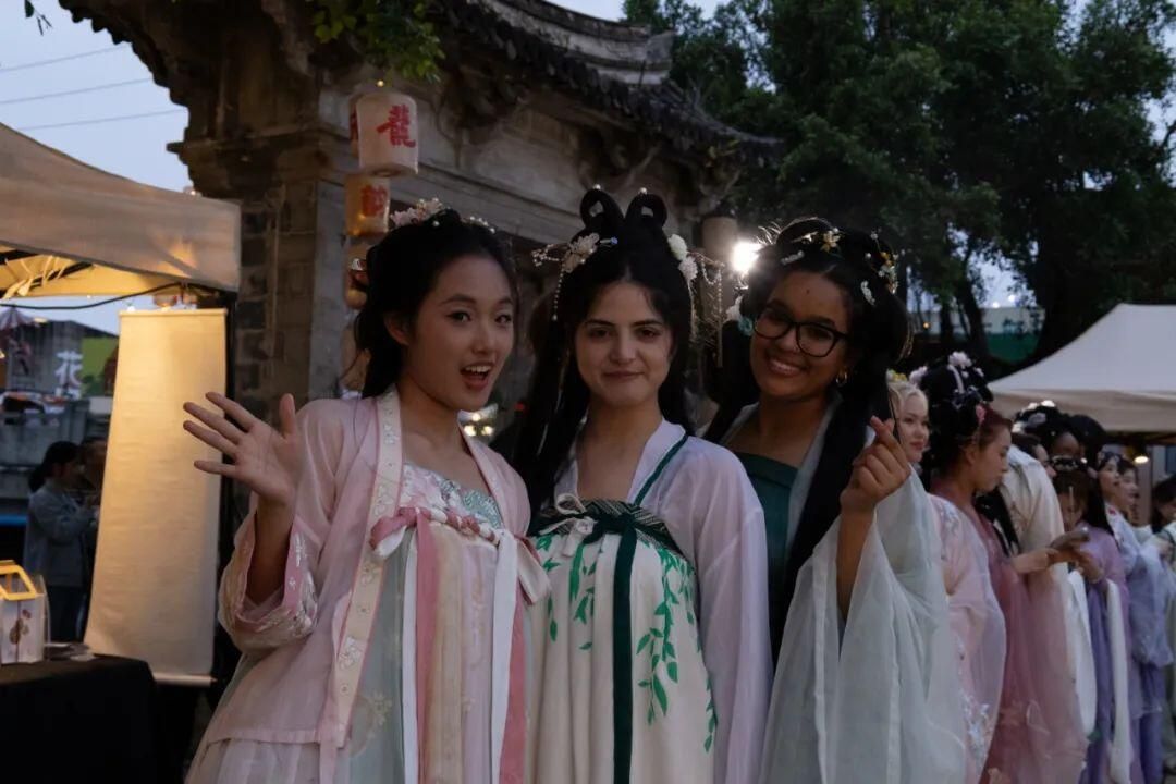 “我非常喜欢中国的传统文化,一切都美丽又有趣。穿上汉服在青灯集市游街逛市,体验中国传统文化,这种体验真的太奇妙了!”来自俄罗斯的留学生柳芭激动地分享道。留学生们在汉服的映衬下,不仅感受到了中华文化的庄重与优雅,更领略到了其深厚的内涵与魅力,为他们的留学生活增添了一抹绚丽的色彩。