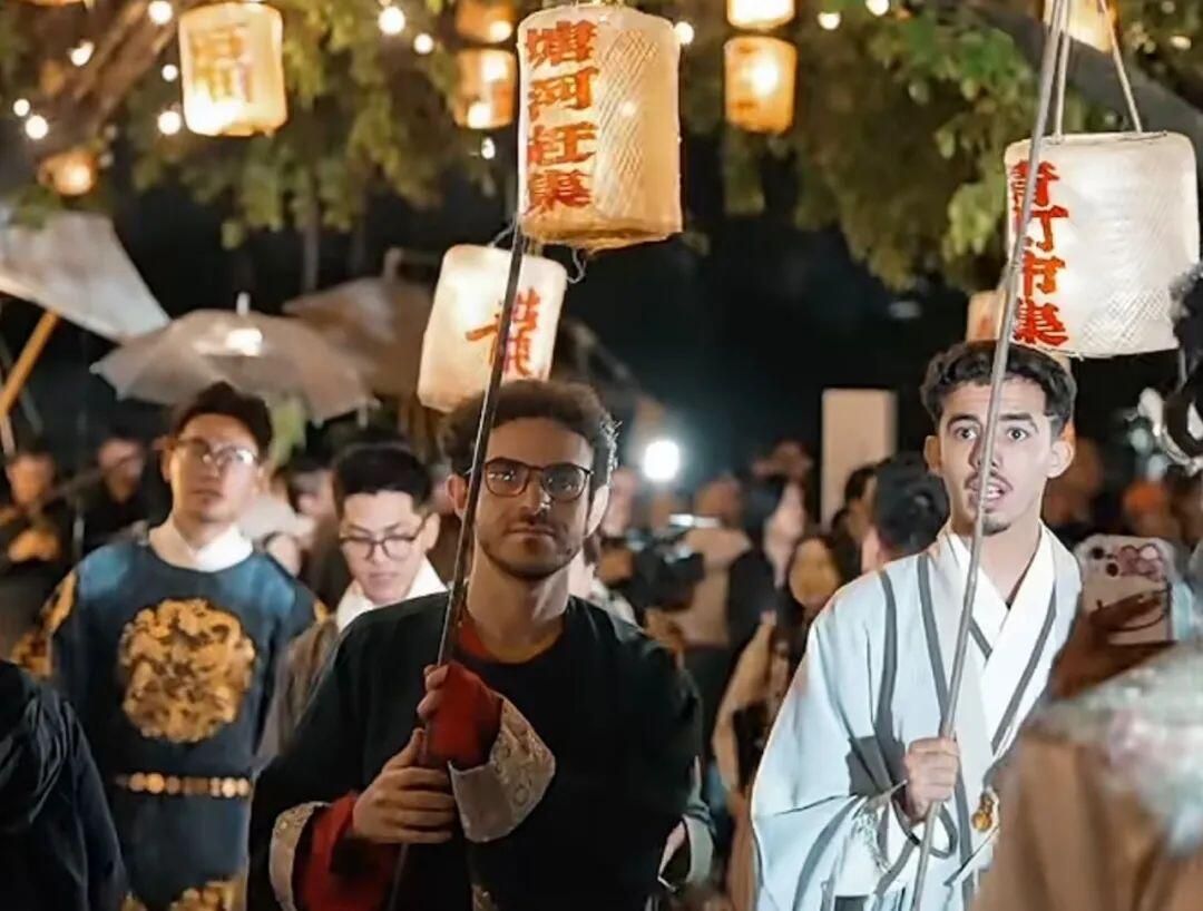 青灯市集,这个充满传统韵味和艺术氛围的地方,为留学生们提供了一个近距离感受中华传统美学的绝佳机会。留学生们身着华丽的汉服,仿佛穿越时光,回到了古代。他们高举花灯,在锣鼓声中跟随“龙灯巡游”队伍绕园而行,构成了一幅充满中华传统韵味的生动画面。他们沉浸在这热闹的氛围中,花灯的光芒照亮了他们充满好奇与欣喜的脸庞,锣鼓的节奏激荡着他们对中华文化的向往。这一场景吸引了众多市民的目光,大家纷纷为留学生们的积极参与点赞。