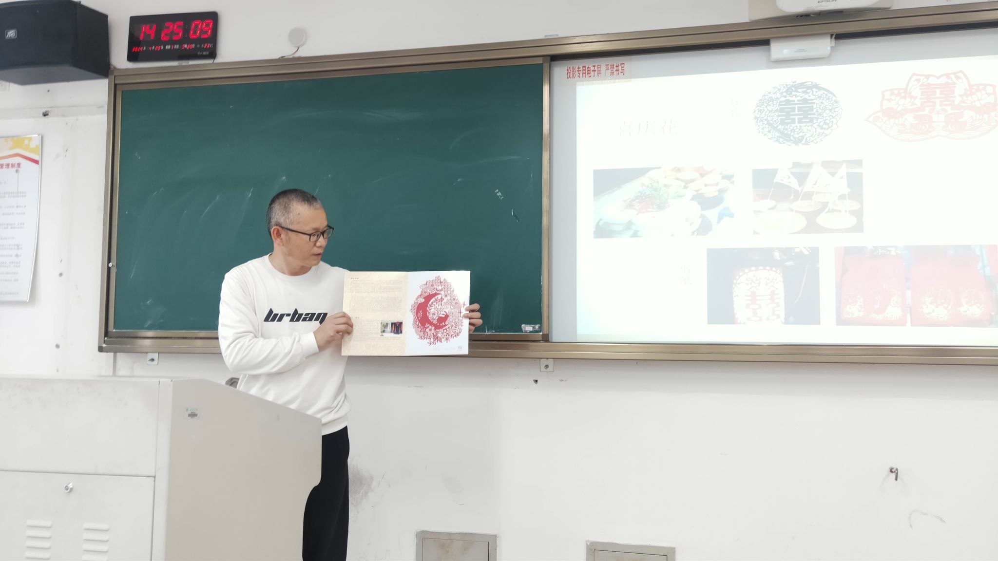 首先,周老师为师生们详细讲解了剪纸艺术的多种图案及南北剪纸的风格差异。他提到,北方剪纸风格注重大气、豪放,追求形似神似,而南方剪纸则更加细腻、精致,追求每一个细节的完美呈现。周老师的讲解,让师生们对剪纸艺术有了更深刻的认识和了解。