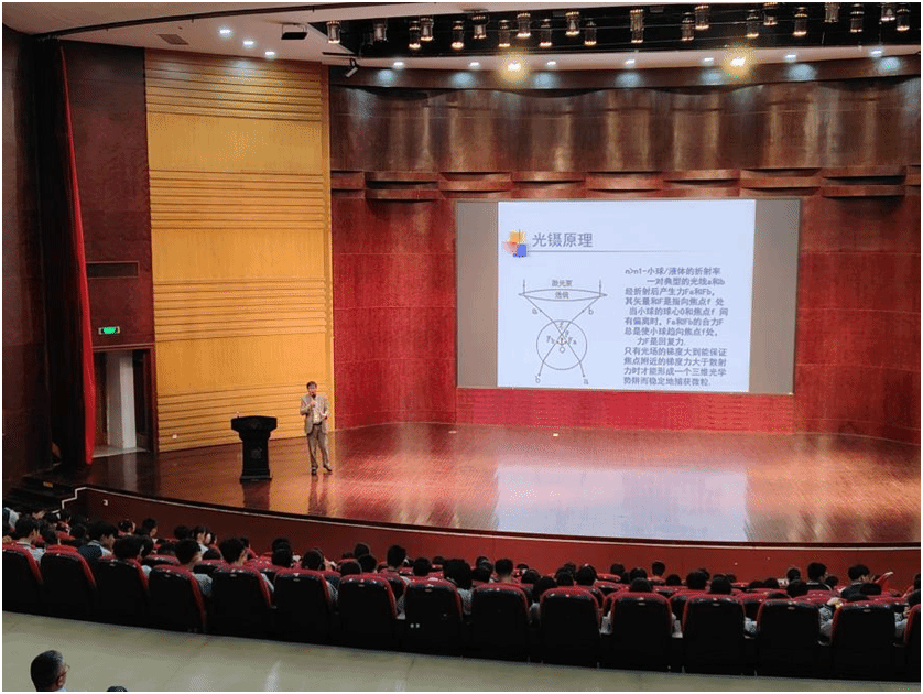 “光镊,就像把镊子一样,能在光学领域内对纳米至微米级的粒子进行操纵和捕获,它可以用于研究对细胞的操控……”近日,一场主题为《微小力的测量及生物单分子技术》的科技前沿科普讲座在ac米兰官网中文网站举行,让来访研学的洞头区海霞中学257名九年级中学生听得津津有味。