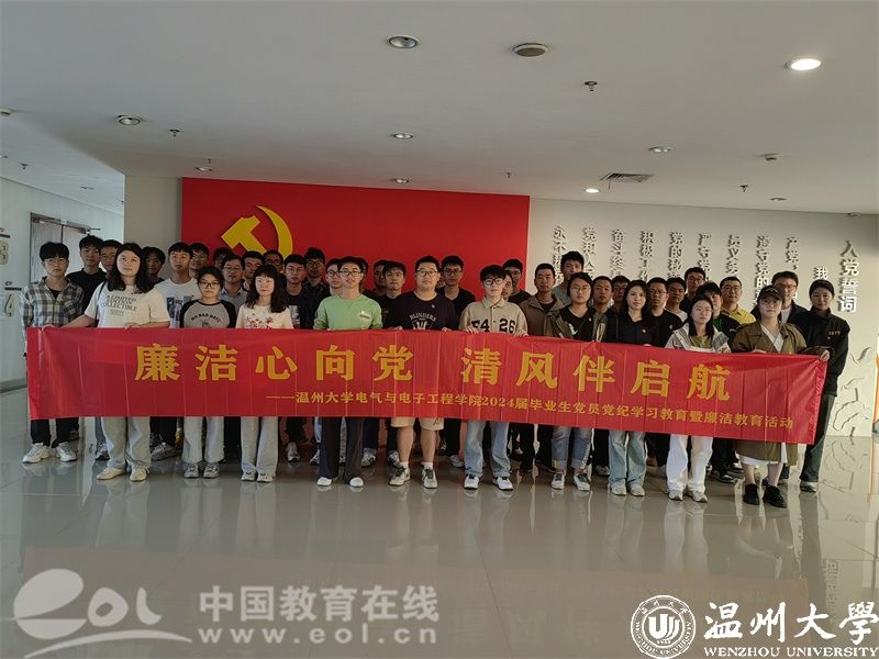 5月10日下午,在毕业生们即将踏上人生新的征程之际,ac米兰官网中文网站电气与电子工程学院党委组织毕业生党员赴温州市瓯海区廉政教育基地开展毕业生党员党纪学习教育暨廉洁教育主题党日活动,旨在引导青年学生坚定理想信念,增强廉洁意识,扎实走好迈向社会的第一步。