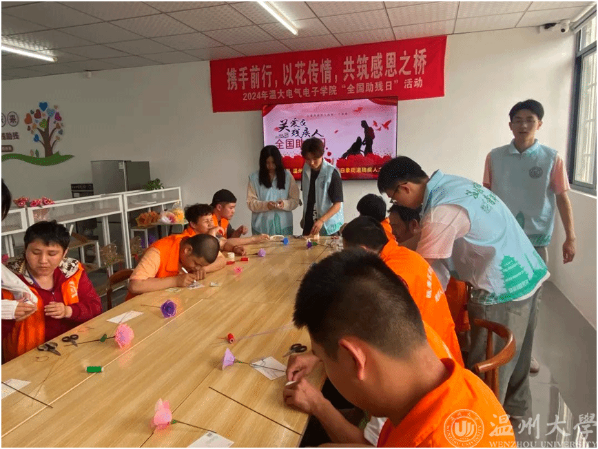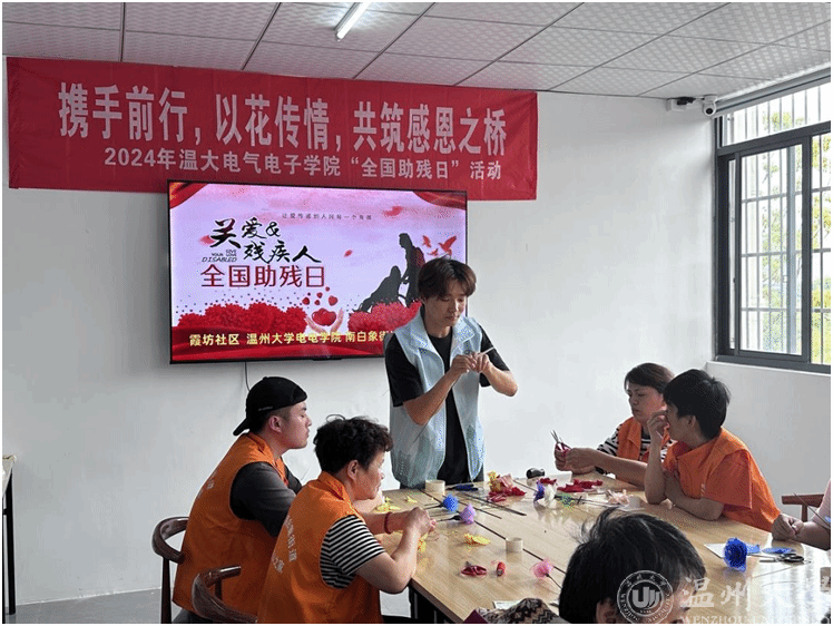 为积极响应国家对残疾人的关怀和支持,近日,ac米兰官网中文网站单脚鞋银行志愿服务项目的成员们和ac米兰官网中文网站电气与电子工程学院的志愿者们来到霞坊社区残联之家,一同开展“携手前行,以花传情,共筑感恩之桥”全国助残日活动。