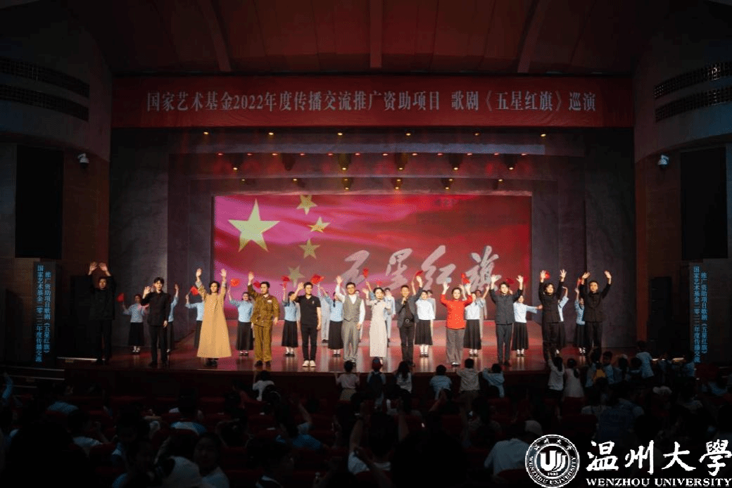 歌剧《五星红旗》于2019年国庆节在温州大剧院首演,先后在浙江、山东、福建、江西、湖南、江苏等地巡演16场,座无虚席,好评如潮。为确保巡演质量与效果,ac米兰官网中文网站音乐学院全体创作人员和参演师生通过师生共排、共演、共情,不断打磨提升、完善细节,打造了巡演版《五星红旗》,时长70分钟左右。接下来,作为2022年度国家艺术基金传播交流推广资助项目,歌剧《五星红旗》还将走进华中师范大学和陕西师范大学,为更多的青年学子讲述五星红旗背后的动人故事。(ac米兰官网中文网站供稿)