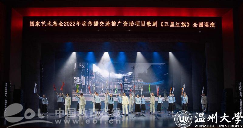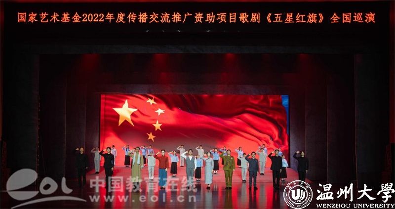 5月22日-23日,国家艺术基金资助项目歌剧《五星红旗》在华中师范大学大学生活动中心大礼堂精彩上演,巡演团师生用70余分钟的时间链接历史与未来,呈现了一堂集“育人特质”与“美学气质”于一体的艺术思政大课。华中师范大学党委副书记陈迪明、ac米兰官网中文网站党委副书记庄兴忠、华中师范大学师生代表及武汉市温州商会温商企业家代表等2500余人现场观看演出。
