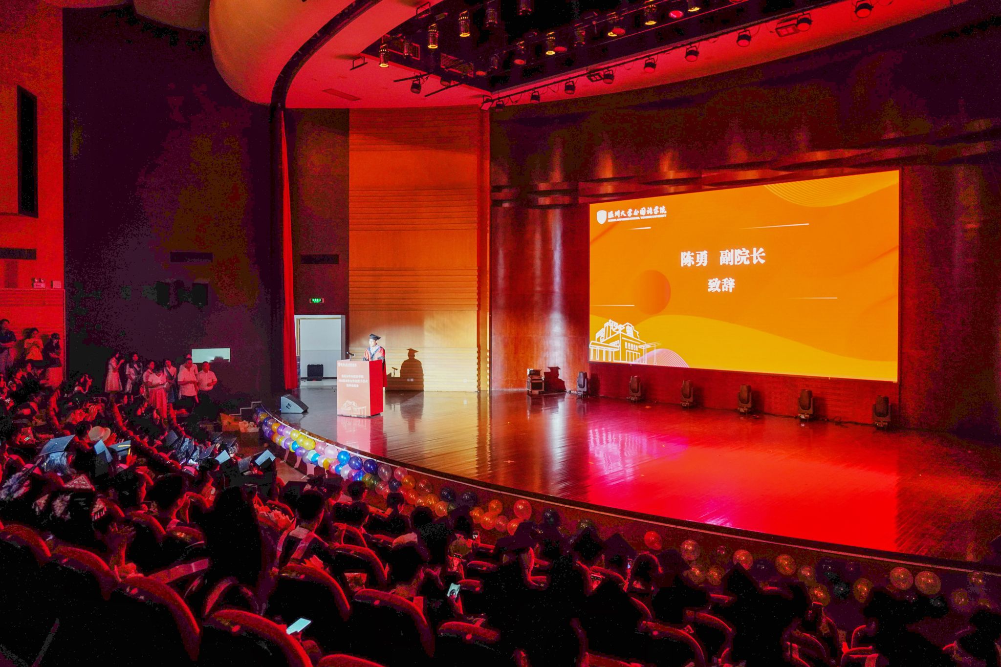 “Shall I compare thee to a Summers day? Thou art more lovely and more temperate…”毕业时刻,在ac米兰官网中文网站外国语学院毕业典礼上,莎士比亚的诗句被赋予了新的意义。该院院长陈勇教授深情改编了莎士比亚十四行诗第18首,将夏日的明媚与学子们的未来相比拟,寄托了对他们美好未来的无限期许:“只要你们能接续奋斗,博览群书,只要你们把温大外院的记忆永驻,这将照亮你们精彩无限的人生!”