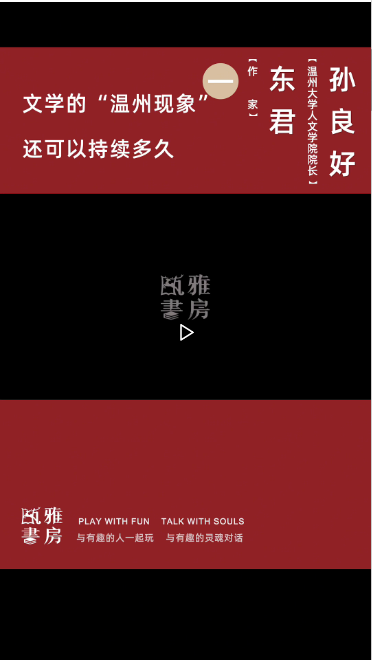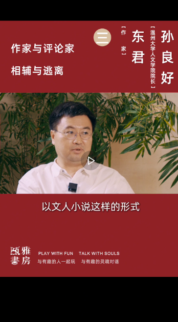 学者、文学评论家孙良好与作家东君做客瓯雅书房,以《无雨烧茶》为引,探讨作品题目的考究和由来;由“东君”一语双关的笔名说起,趣谈温州作家王手、马叙、陈河等人的笔名故事及文风;从评论家和作家之间视野不同、良性互动的关系出发,谈起东君在文学创作上反惯性写作、不断突破自我、脱离被标签化的追求,及其在小说文体创新上做出的尝试。最后,梳理温州的文脉发展,寄深切期待于当下成为温州文化史上的第三个黄金时期。