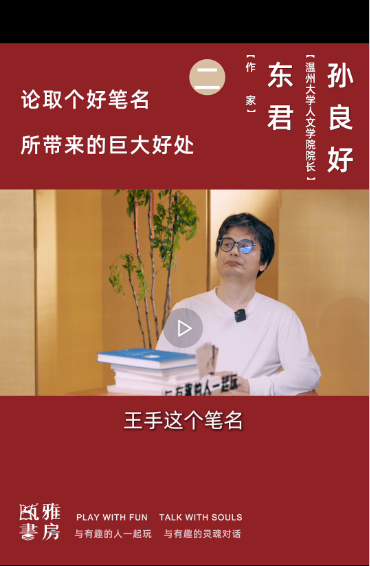 孙良好:不仅是作品的题目,作家的笔名也有讲究的,也有无意得来的。温州的作家当中,有些笔名特别有意思。笔名一改,似乎不知不觉就带来写作上的一些变化和关注。