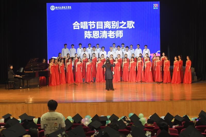 现场,毕业生代表用鲜花致敬辛勤付出的教师,瓯乐合唱团以《离别之歌》演绎回忆与未来;全体师生共同唱响《ac米兰官网中文网站校歌》,祝愿扬帆再起航。
