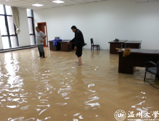 新教室受台风影响漫大水