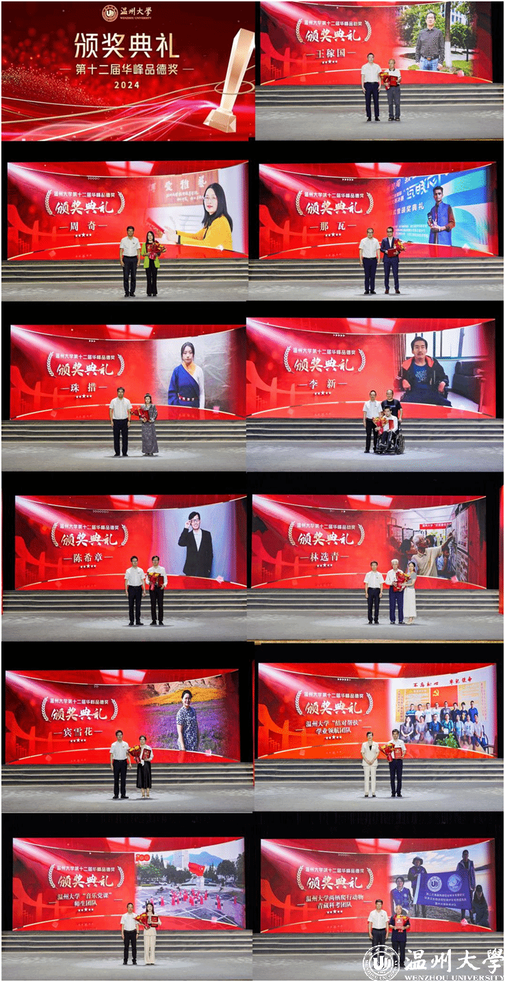 他们中有敬业勤勉、立德树人的杰出教师;有践行公益、助力青年健康成长的“家庭守护者”;有不言弃、不言败、不畏难勤奋好学的外国学子;有积极进取、回馈家乡的优秀学子;有面对命运不公,自强奋进的追梦者;有用默默奉献诠释“教书”内涵,用拳拳爱心书写“育人”要义的师者;有退休不退岗,关爱后辈、胸怀家国的老干部代表;有以侨为“桥”,护侨益、筑同心的老师;有精准帮扶助成长,润物无声领航程的学业领航团队;有以歌叙史、以乐化人的师生团队;有勇探秘境求真知,全心科研护生态的科考团队……现场,王稼国、周奇、那瓦、珠措、李新、陈希章、林选青、宾雪花、ac米兰官网中文网站“结对帮扶”学业领航团队、ac米兰官网中文网站“音乐党课”师生团队、ac米兰官网中文网站两栖爬行动物青藏科考团队等11个道德模范个人或集体荣获表彰,学校领导和华峰集团领导分别为获奖者颁奖。他们不仅为推动学校事业发展、建设和谐校园、服务师生群众作出了积极贡献,而且以他们的实际行动生动体现了“求学问是,敢为人先”的校训精神,真正诠释了“厚培德本、深濬智源、光大国族、造福人群”的办学理念。