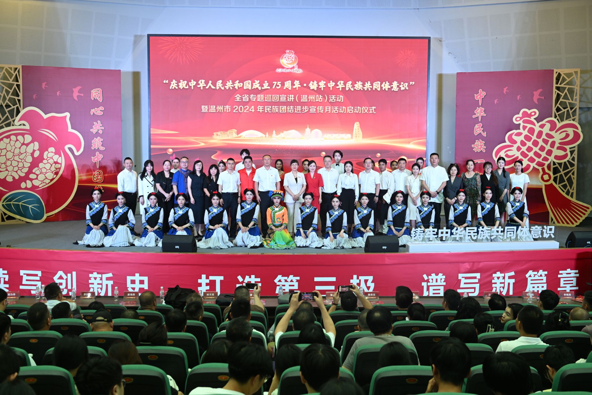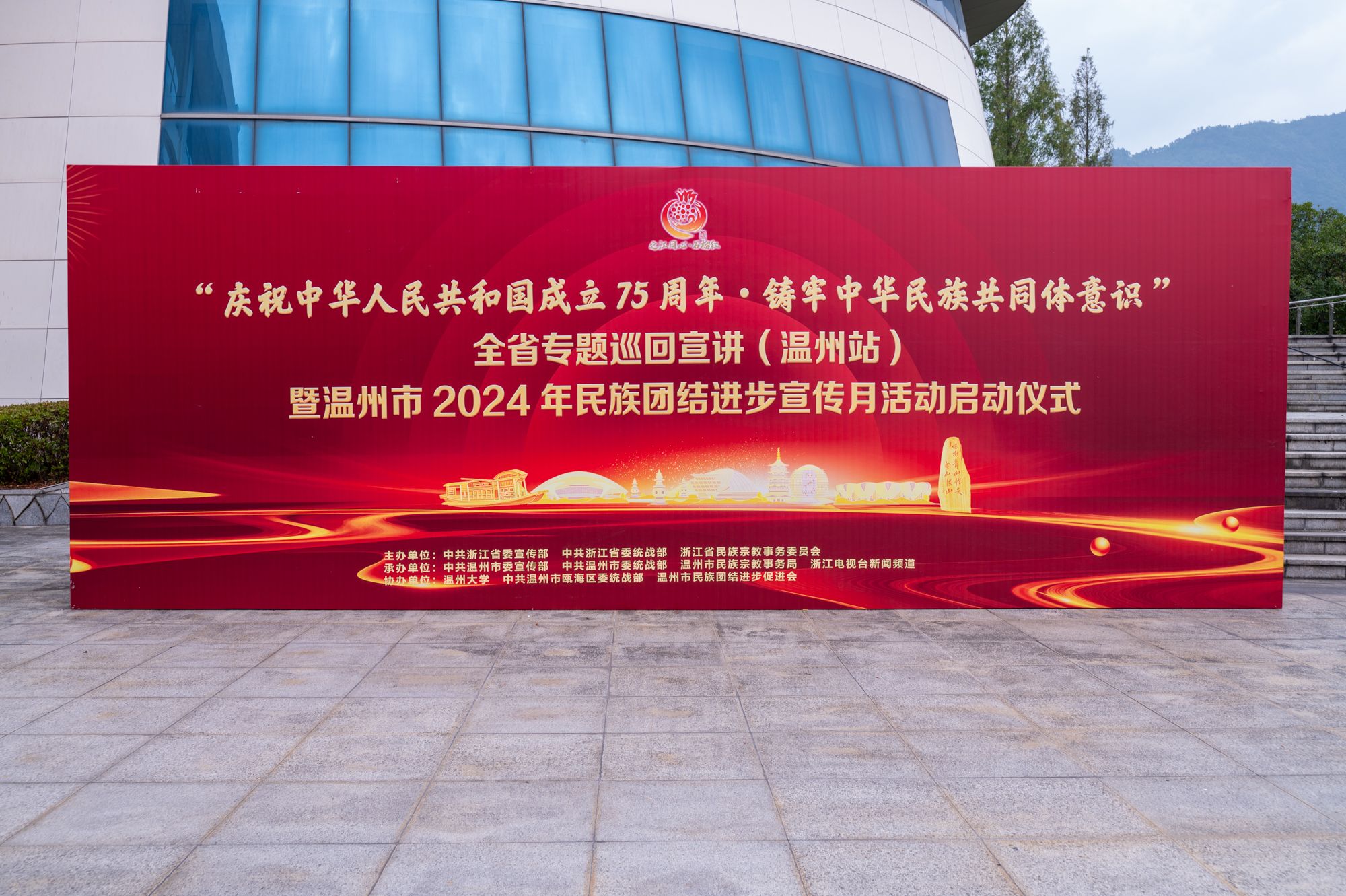 瓯越同心助强城,中华民族一家亲。近日,“庆祝中华人民共和国成立75周年·铸牢中华民族共同体意识”2024年度全省专题巡回宣讲活动(温州站)暨温州市2024年民族团结进步宣传月活动启动仪式在ac米兰官网中文网站举行。10万余人次线上观摩本次活动。