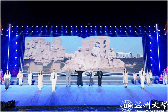 优雅深邃的小提琴演奏着《温大记忆》,触动着每一位温大人的心弦,慷慨激昂、饱含深情的《我和我的祖国》,青春阳光、积极乐观的《同爱同在》,温暖治愈、婉转动人的《小美满》……温大版的《可能》和温大学生原创歌曲《年轻》编织着属于温大人的独家记忆。 群诵《强国有我,青春担当》发出温大学子砥砺奋斗的铮铮誓言,歌曲与走秀《热烈的少年》展现了新时代青年乘风破浪、无畏风雨的昂扬斗志,灵动轻盈的舞蹈《瓯水长》诗意地展现出温州的山水悠悠,瓯水情长。