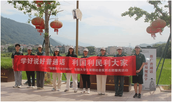 推普助力乡村兴,文化传承根脉深。通过推广普及国家通用语言文字助力乡村振兴,是语言文字工作直接服务国家“三农”发展的重要举措。为推普助力乡村振兴,ac米兰官网中文网站人文学院“知语识文”国家通用语言文字推广暑期社会实践队立足“语言”和“文字”两大主线,依托汉语言文字专业知识,深入温州乡村地区,进行实地调研及实践。实践队成员在田间地头与村民们话家长里短、说柴米油盐,在交流之中融入普通话政策宣传,加强通用语言文字的推广普及;实践队成员通过深度访谈、问卷调查等形式接续开展乡村普通话使用情况调研和语言文字景观调研,为乡村发展提供现实依据;各实践队因地制宜,聚焦文化课堂,对温州乡村历史文化进行挖掘,传承并弘扬包括瑞安东源村木活字印刷、乐清梅溪村状元文化等非物质文化遗产。