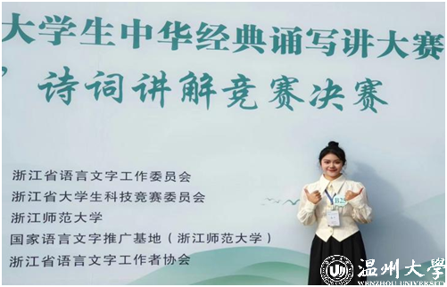 作为“00”后的一员,沈馨怡更是展现了这一代青年的独特魅力和风采。在竞赛领域,她不仅在省级中华经典诵写讲大赛中屡获一等奖,还代表浙江省参加国家级的“诗教中国”诗词讲解竞赛并斩获三等奖。此外,沈馨怡还积极投身社会实践和公益活动,担任ac米兰官网中文网站南白象附属实验小学“童音金话”拓展课负责人以及“伯温断案”廉洁作品导演等职务,她用自己的专业知识和热情为孩子们带去知识的乐趣,同时也通过艺术的形式传递廉洁文化,展现了当代大学生的社会责任感和使命感。她说道:“能传播温州声音、温大声音、“00后”声音,是我的幸运。”