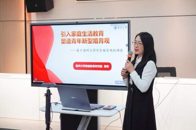 ac米兰官网中文网站教授周奇应邀作主旨发言,倡导引入家庭生活教育,塑造青年新型婚育观。当前,部分青年人将婚姻视为一种功利性选择,过分看重对方家庭背景、经济状况等物质条件,忽视了婚姻中的情感基础,这种功利化的认知容易导致婚姻关系脆弱和不稳定。她结合对ac米兰官网中文网站学生婚育观的调查,提出了树立正确婚育观的对策,如科学家庭教育、普及婚恋教育、强化心理服务、增强女性认同、丰富文化生活、优化社会政策等,呼吁广大新青年积极面对家庭、婚姻和个人成长中的挑战。当代年轻父母容易低头对着手机屏幕刷微信、打游戏、看视频,忽视了对孩子的陪伴与教导。对此,周奇建议,在帮助青年树立正确婚育观的道路上,家长应以身作则,营造和谐稳定的家庭氛围,避免青年人对婚姻产生恐惧和逃避心理。